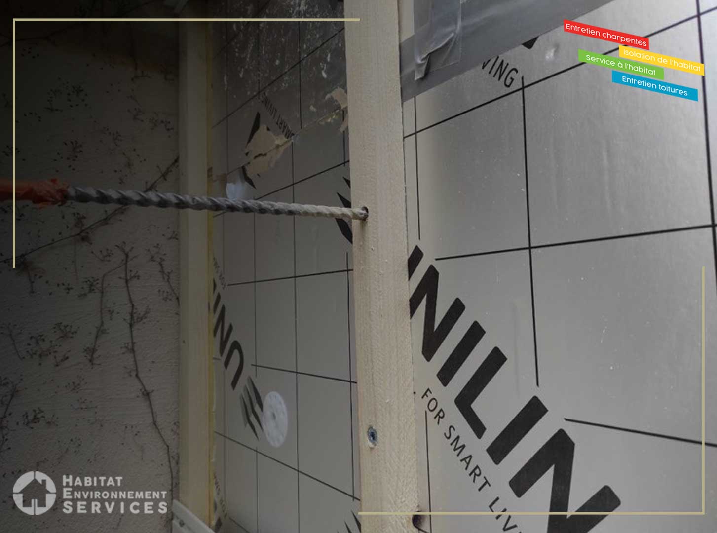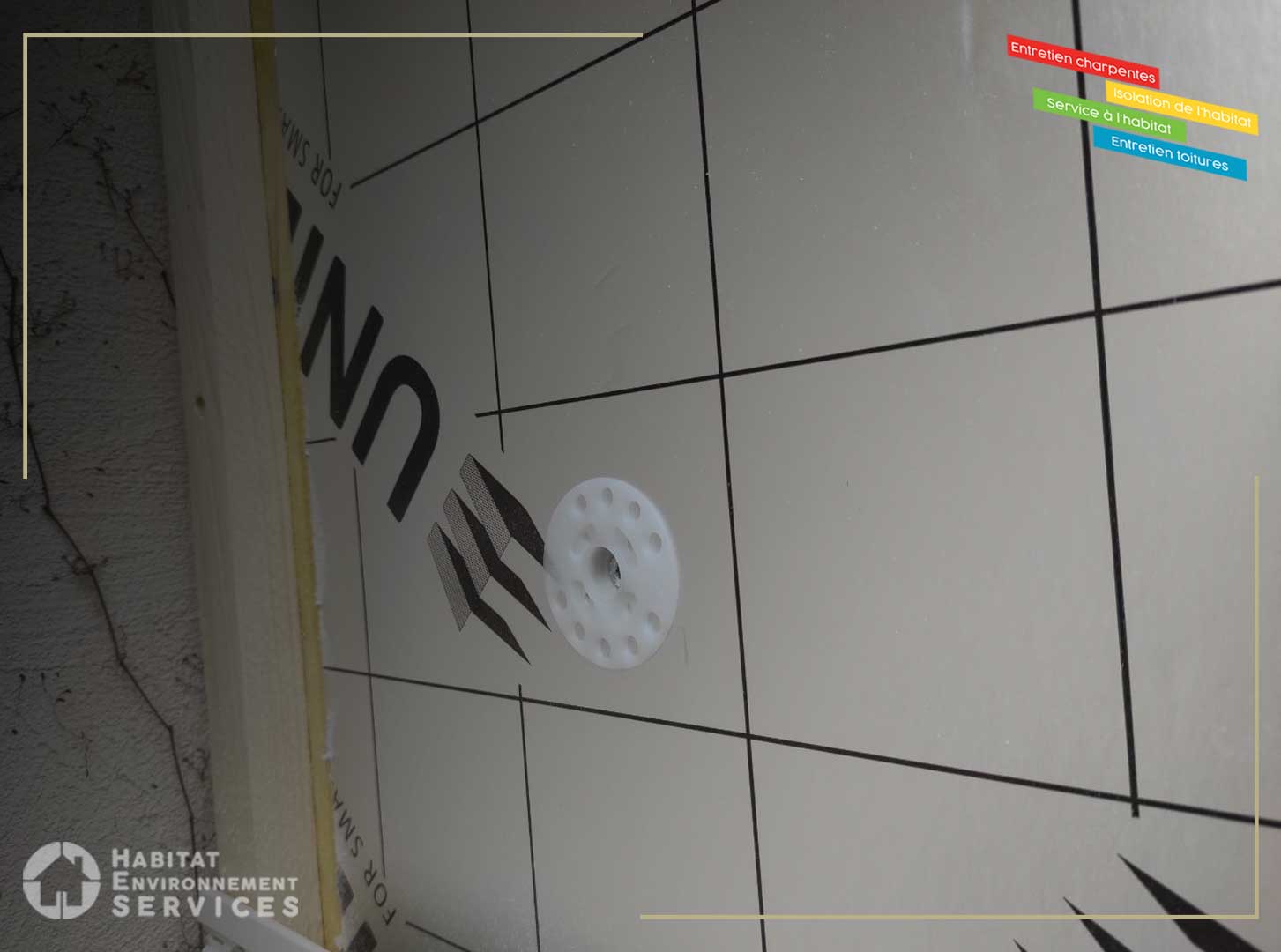 Le produit isolant posé, est un Utherm Wall L de chez Unilin Insulation France, c’est un parement multicouche étanche 150g/m², qui en fait le produit idéal pour isoler les murs des maisons individuelles isolées ou jumelées et des immeubles collectifs jusqu’à 3 étages sur rez-de-chaussée.