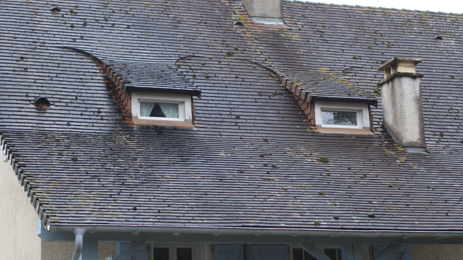Sur ce chantier, la difficulté, résidait sur le fait que la toiture est recouverte de tuiles Picon, légèrement bombées et très fragiles.